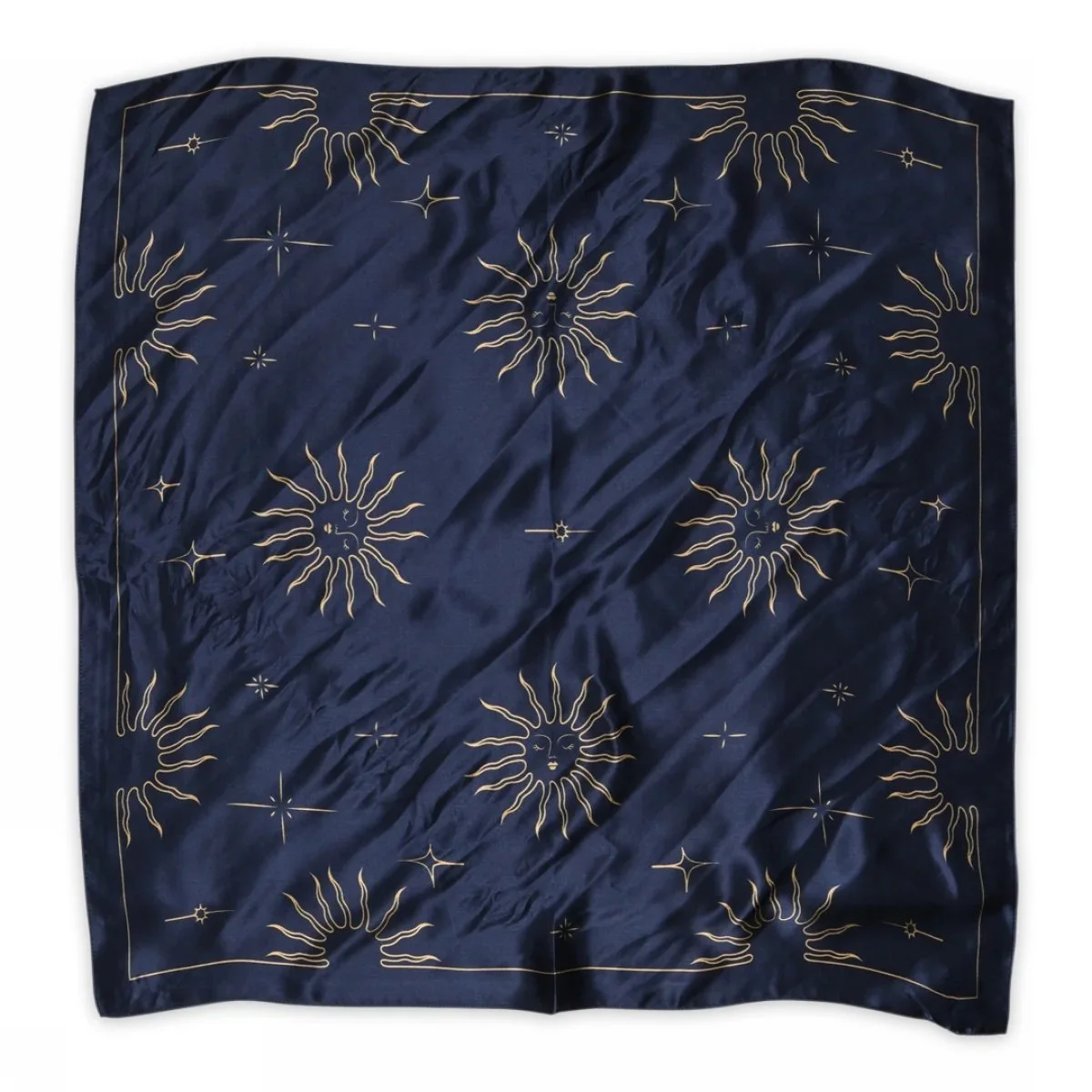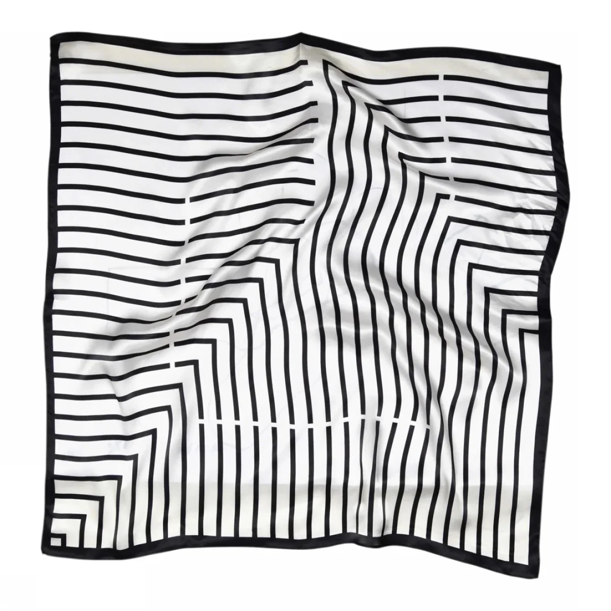 Square silk scarf from SneakyFox, with a motif of a horse made of geometric shapes. The scarf is made of 100% soft silk and measures 68x68cm.