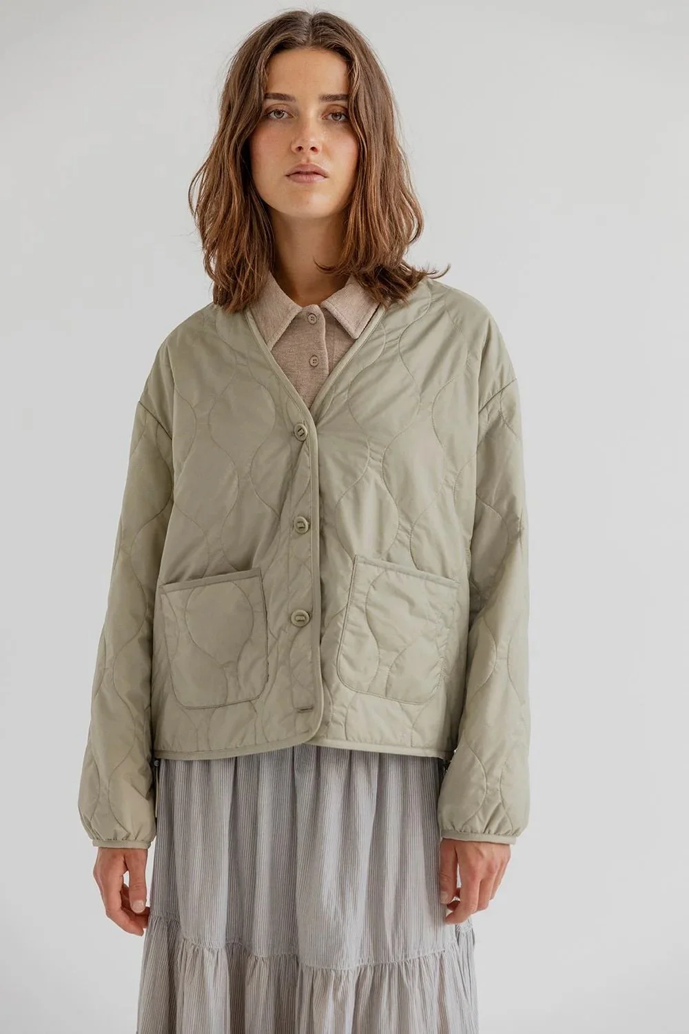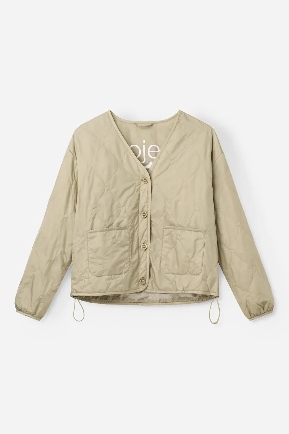 Nola is a lightweight quilted jacket in our popular nylon quality. Designed with a V-neckline, button closure and two front patch pockets. The jacket has a slightly cropped silhouette and adjustable drawstrings at the hem that allow you to change the shape. The soft quilted pattern adds texture while keeping the look clean and easy for everyday wear.