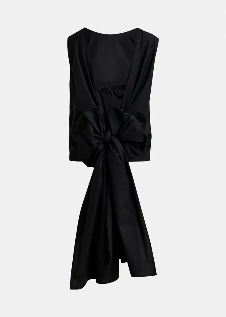 Crafted from 100% cotton, this statement top features a relaxed boxy fit with a striking low back. Designed with a wrap effect and a self-fabric tie, it offers versatile styling—you can tie it multiple ways to change the look and fit to suit your mood.