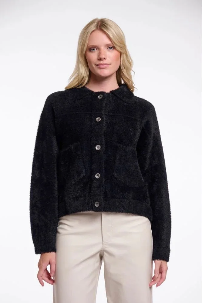 Elevate your everyday wardrobe with this striking boxy jacket from Rino & Pelle. The contemporary silhouette offers a modern, relaxed fit that flatters all body types, while the crisp flat collar and button front closure deliver timeless sophistication. Practical front pockets keep essentials within reach, and thoughtful cuff buttons plus decorative back details add refined touches. Crafted in classic black, this versatile piece transitions seamlessly from casual weekends to smart casual occasions, making it an essential layering piece for any season.