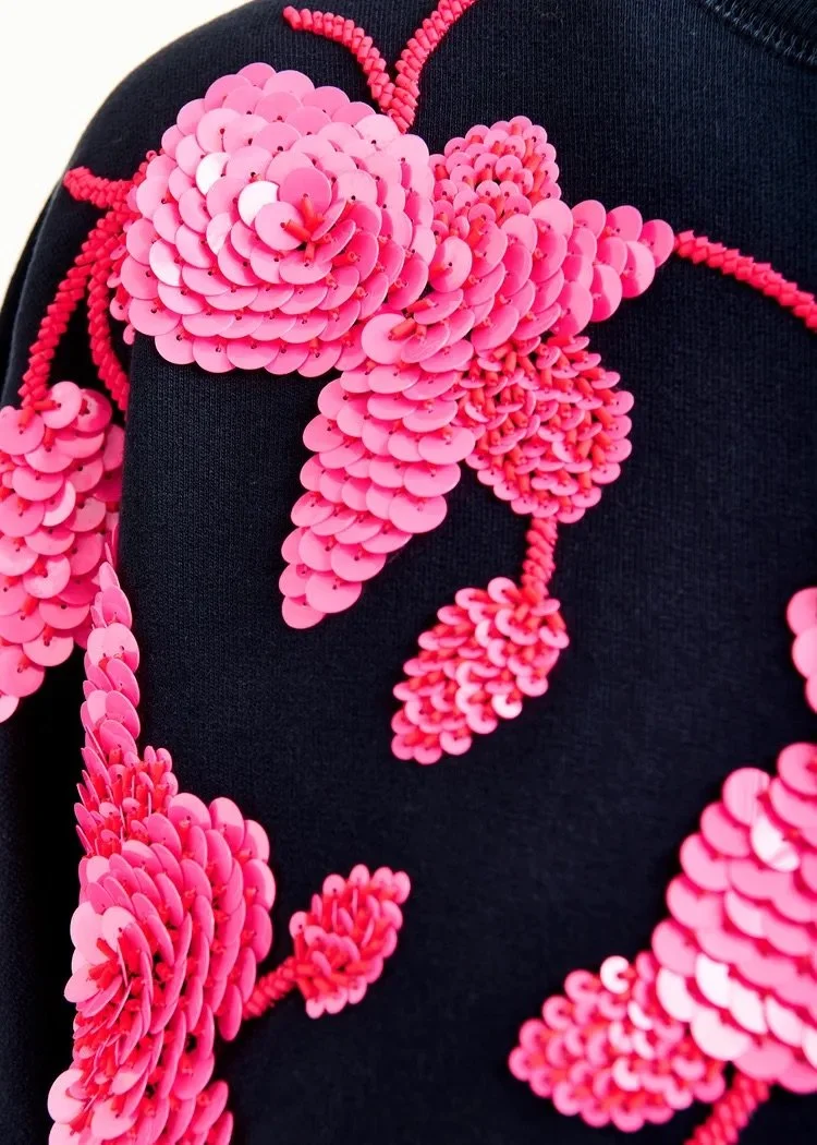 Soft cotton-jersey sweatshirt has a relaxed fit and is modernly detailed with double stitching. Elevate even your most casual days with a touch of sparkle, thanks to delicate flower-shaped sequin and bead-embellished embroidery.